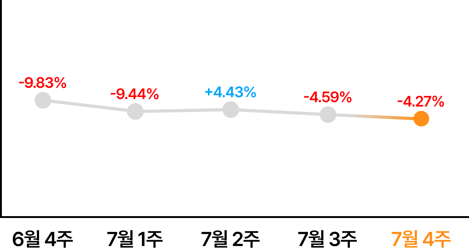 지난주에 이어서 7월 4주차에도 그래프의 전반적인 하락세가 이어지고 있습니다.