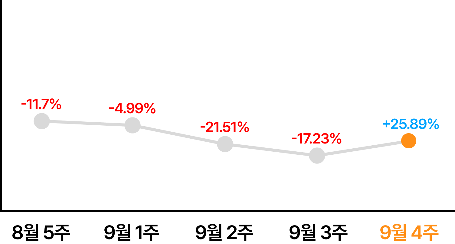 9월 4주차는 추석연휴가 끝나며 감소했던 점유율 회복과 함께 전반적인