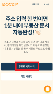 ③ 닥집 홈페이지에서 무료로 시작하기 버튼 클릭
